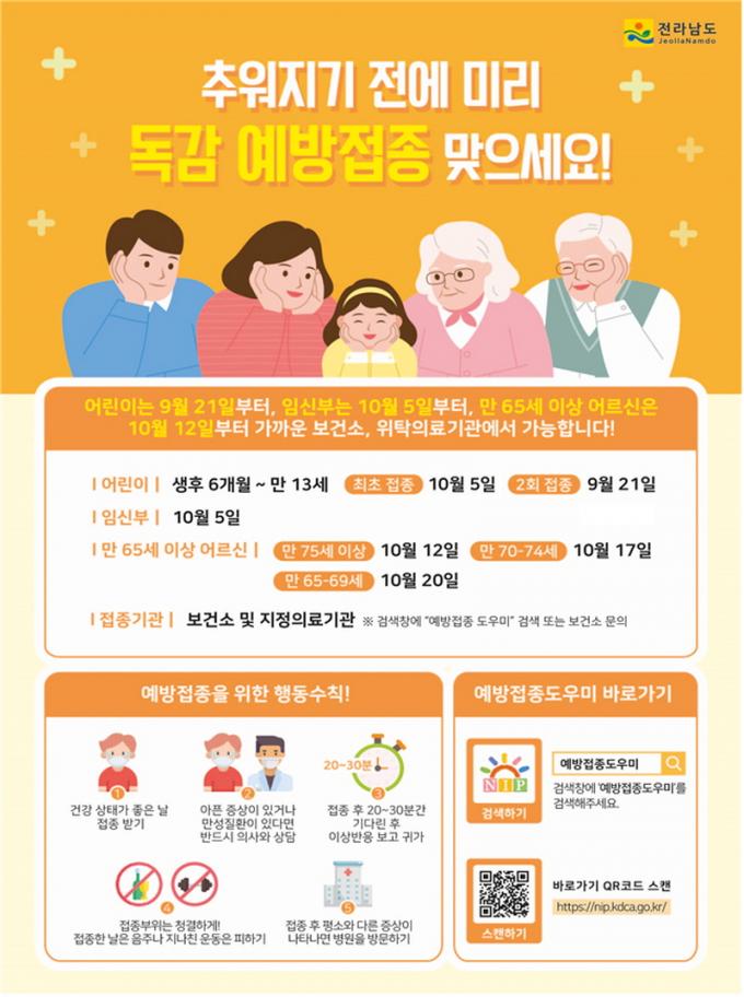 Àü³²µµ´Â ÀÎÇ÷翣ÀÚ ¹«·á ¿¹¹æÁ¢Á¾À» Áö³Çغ¸´Ù 1ÁÖÀÏ ¾Õ´ç°Ü ½Ç½ÃŰ·Î Çß´Ù. Á¢Á¾ ÃÊ¹Ý È¯ÀÚ ½ò¸² ¿¹¹æÀ» À§ÇØ ´ë»óÀÚº° Á¢Á¾ ±â°£À» ±¸ºÐÇϰí ž óÀ½À¸·Î µ¶°¨ ¹é½ÅÀ» ¸Â´Â ¿µÀ¯¾Æ¿Í ¾î¸°À̸¦ ¿ì¼± Á¢Á¾ÇÑ´Ù. »ýÈÄ 6°³¿ù~¸¸ 13¼¼ ¾î¸°ÀÌ´Â 21ÀϺÎÅÍ, Àӽźδ 10¿ù 5ÀϺÎÅÍ, ¸¸ 65¼¼ ÀÌ»ó ¾î¸£½ÅÀº 10¿ù 12ÀϺÎÅÍ Á¢Á¾ÇÒ ¼ö ÀÖ´Ù.
