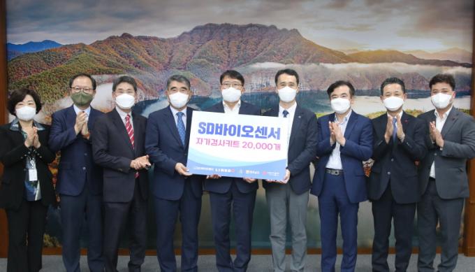 SD¹ÙÀÌ¿À¼¾¼ÀÇ ÀÚ°¡°Ë»çŰƮ´Â Áö³ÇØ 4¿ù ½ÄǰÀǾàǰ¾ÈÀüóÀÇ Á¤½Ä »ç¿ë Çã°¡¿Í, ¼¼°èº¸°Ç±â±¸(WHO) ±ä±Þ ½ÂÀÎÀ» ¹Þ¾Ò´Ù. ÀÚ°¡°Ë»çŰƮ´Â 15ºÐ ¾È¿¡ ÇöÀå¿¡¼ °Ë»ç °á°ú¸¦ ºü¸£°Ô È®ÀÎÇÒ ¼ö ÀÖ°í, Ưº°ÇÑ Àåºñ ¾øÀÌ »ç¿ë °¡´ÉÇØ ¼±º°°Ë»ç¿ëÀ¸·Î Ȱ¿ëÇϸé È¿À²¼ºÀÌ ³ô´Ù.