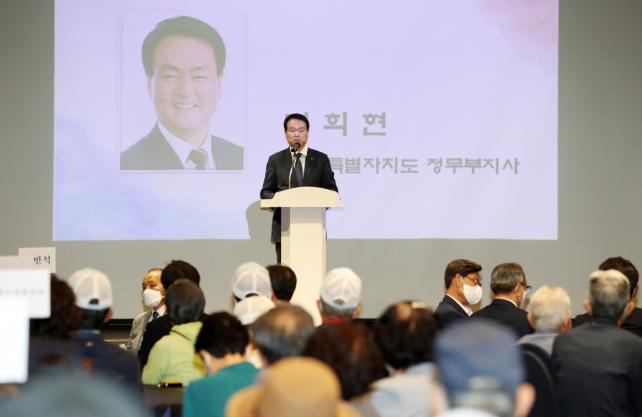 [È£³²µµ¹Î½Å¹® = ³²Àç¿Á ±âÀÚ] ±èÈñÇö Á¦ÁÖÆ¯º°ÀÚÄ¡µµ Á¤¹«ºÎÁö»ç´Â 29ÀÏ ´ëÇѹα¹Àü¸ô±º°æÀ¯Á·È¸Á¦ÁÖÆ¯º°ÀÚÄ¡µµÁöºÎ(ÁöºÎÀå °ÀÀºÀ)°¡ ÁÖÃÖÇÑ Á¦10ȸ µ¶°Å¡¤°í·Éȸ¿ø À§·Î¿¬¿¡ Âü¼®ÇØ °í·É¡¤µ¶°Å À¯Á·È¸¿øÀÇ °Ç°À» »ìÇÇ°í °¨»ç¿Í À§·ÎÀÇ ¸¶À½À» ÀüÇß´Ù.