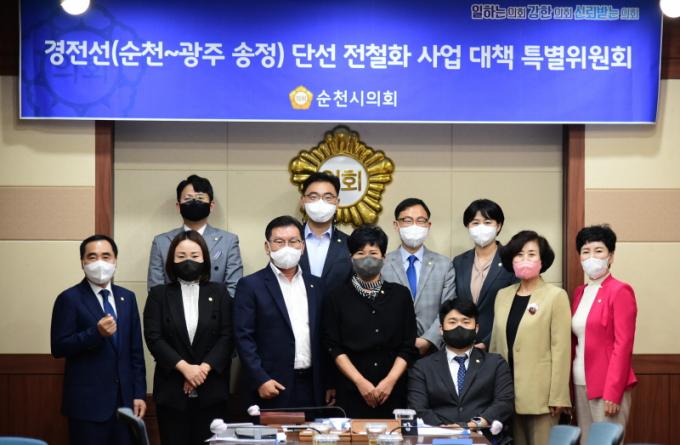ÀÌ¾î ¼ÒȸÀǽǿ¡¼ °³ÃÖµÈ Á¦1Â÷ °æÀü¼±(¼øÃµ~±¤ÁÖ ¼ÛÁ¤) ´Ü¼± ÀüÃ¶È »ç¾÷ ´ëÃ¥ Ưº°À§¿øÈ¸ ȸÀÇ¿¡¼ À§¿øÀåÀ¸·Î ÀÌÇâ±â ÀÇ¿øÀÌ, ºÎÀ§¿øÀå¿¡ À̼¼Àº ÀÇ¿øÀÌ ¼±ÃâµÇ¾úÀ¸¸ç, ½ÅÁ¤¶õ¡¤¿ì¼º¿ø¡¤Àå°æ¼ø¡¤±èÅÂÈÆ¡¤¼¼±¶õ¡¤ÃÖÇö¾Æ¡¤¾çµ¿Áø¡¤À¯½ÂÇö¡¤Á¤±¤Çö ÀÇ¿ø ÃÑ 11¸íÀÌ 2023³â 12¿ù¸»±îÁö Ưº°À§¿øÈ¸ À§¿øÀ¸·Î Ȱµ¿ÇÒ °èȹÀÌ´Ù.