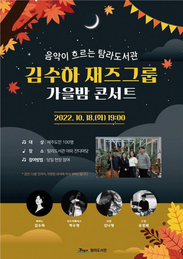 <±è¼öÇÏ ÀçÁî±×·ì> °¡À»¹ã ÄܼƮ´Â ޶󵵼°ü ¾ß¿Ü Àܵ𸶴翡¼ 1½Ã°£ µ¿¾È ÁøÇàµÇ¸ç Á¦ÁÖµµ¹Î ´©±¸³ª Âü¿© °¡´ÉÇÏ´Ù. »çÀü ½Åû¾øÀ̰ø¿¬ ´çÀÏ 10ºÐ Àü±îÁö ¸¶·ÃµÈ Á¼®¿¡ Âø¼®ÇÏ¸é µÈ´Ù.