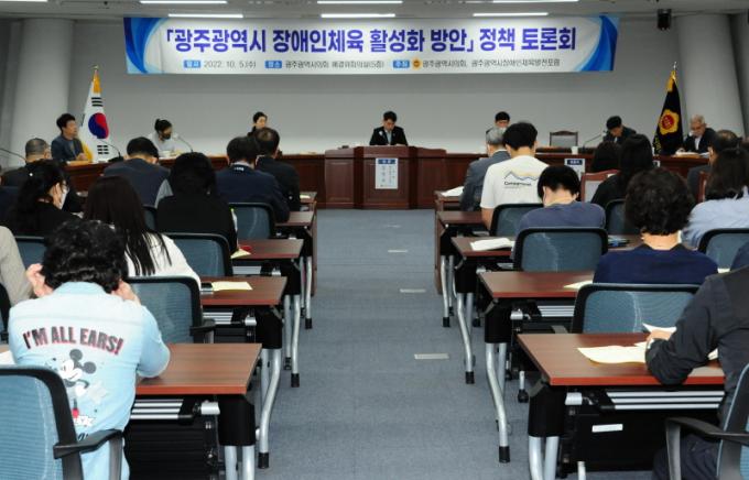 ½Éâ¿í ÀÇ¿øÀÌ ÁÂÀåÀ» ¸Ã¾Æ ÁøÇàÇÏ¿´À¸¸ç ¹ßÁ¦´Â ÀÌÀç½Ä ±¤ÁÖ±¤¿ª½Ã Àå¾ÖÀÎüÀ°¹ßÀüÆ÷·³ ÁýÇàÀ§¿øÀåÀÌ ±×¸®°í Åä·ÐÀÚ´Â ¾ÈÀçÂù ±¤ÁÖ´ëÇб³ ½ºÆ÷Ã÷°úÇкΠ±³¼ö, Á¶Àç°ü ±¤Áֽà Àå¾ÖÀÎŹ±¸ÆÀ °¨µ¶, ±è¼¼Á¤ ±¤Áֽà Àå¾ÖÀÎ Á¶Á¤ ±¹°¡´ëÇ¥°¡ Âü¼®ÇßÀ¸¸ç ±¤Áֽÿ¡¼´Â À̺ÎÈ£ üÀ°ÁøÈï°úÀåÀÌ Åä·ÐÀÚ·Î Âü¼®Çß´Ù.