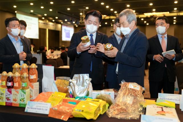 Á¦ÁÖµµ°¡ ÁÖÃÖÇÏ°í ´ëÇѹ«¿ªÅõÀÚÁøÈï°ø»ç(KOTRA) Á¦ÁÖÁöºÎ¿Í Á¦ÁÖµµ °æÁ¦Åë»óÁøÈï¿øÀÌ ÁÖ°üÇÑ À̳¯ »ó´ãȸ¿¡´Â °ø¸ð·Î ¼±Á¤µÈ µµ³» ¼öÃâ±â¾÷ 45°³»ç¿Í ÇÔ²² 7°³±¹ ÇØ¿Ü ¹ÙÀÌ¾î ¹× ÇØ¿Ü¹«¿ª»ó»ç 28°÷ÀÌ Âü¿©Çß´Ù.