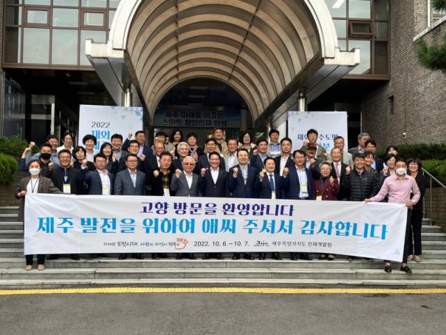 ±è½Â¹è ¿øÀåÀº ¡°°íÇâ ¹ßÀüÀ» À§ÇØ ¹°½É¾ç¸éÀ¸·Î ¾Ö½áÁֽô Àç¿Üµµ¹ÎµéÀ» ¸ð½Ã°í Á¦ÁÖÀÇ ¹ßÀü»ó°ú ¿ª»ç¡¤¹®È¸¦ ±íÀÌ ÀÖ°Ô »ìÆìº¸´Â ±âȸ¸¦ Á¦°øÇϰí, ±¹³»¡¤¿Ü Àç¿Üµµ¹ÎµéÀÌ ¼ÒÅëÇϰí ÈÇÕÇϸç Á¦ÁÖ ¹ßÀü°ú Çù·ÂÀ» ³íÀÇÇÏ´Â ÀÚ¸®¸¦ ¸¶·ÃÇß´Ù¡±°í ÇâÅäÇб³ÀÇ Àǹ̸¦ ¼³¸íÇß´Ù.