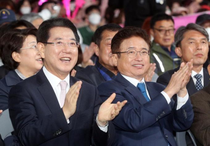 À̳¯ Çà»ç¿¡ Âü¼®ÇÑ ¿µÈ£³² Áö¿ª¹Îµéµµ Àü³²-°æºÏÀÌ À̲ø¾î°¥ Áö¹æ½Ã´ë¿¡ ´ëÇÑ ±â´ë°¨¿¡ ¶ß°Å¿î ¹Ú¼ö°¥Ã¤¸¦ ¿¬ÀÌ¾î ½ñ¾Æ³Â´Ù.