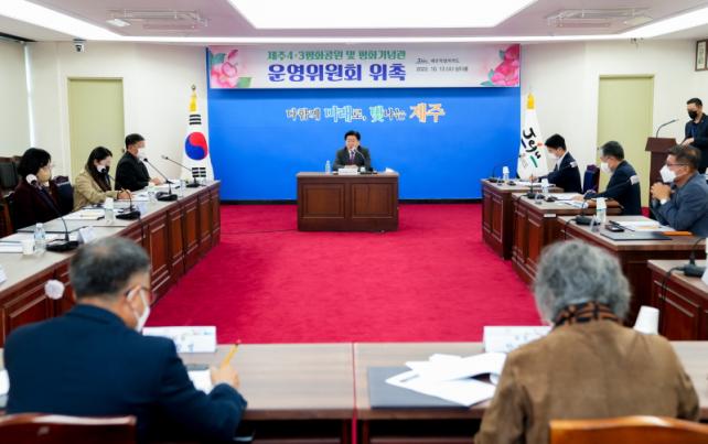 Á¦ÁÖ4¡¤3ÆòȰø¿ø ¹× Á¦ÁÖ4¡¤3Æòȱâ³ä°ü ¿î¿µÀ§¿øÈ¸(ÀÌÇÏ ¿î¿µÀ§¿øÈ¸) À§Ã˽ÄÀÌ 12ÀÏ ¿ÀÀü 10½Ã Á¦ÁÖµµÃ» º»°ü 2Ãþ »ï´ÙȦ¿¡¼ °³ÃֵƴÙ.