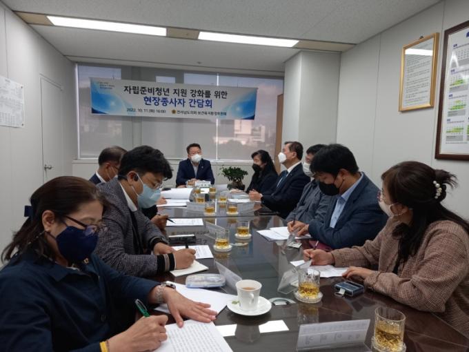 À̳¯ °£´ãȸ´Â ±è¹ÌÀÚ Àü³²¾Æµ¿º¹ÁöÇùȸÀå, ±è±â³² Àü³²°¡Á¤À§Å¹Áö¿ø¼¾ÅÍÀå, ¹®¼ºÀ± Àü³²°¡Á¤À§Å¹Áö¿ø¼¾ÅÍÀå, ¸¶ÇâÈñ․³ëÁ¾³² Çѱ¹¾Æµ¿Ã»¼Ò³â±×·ìȨÇùÀÇȸ Àü³²ÁöºÎ ºÎȸÀå µî ¾Æµ¿º¹Áö½Ã¼³ Á¾»çÀÚµéÀÌ ÇöÀå¿¡¼ °Þ°í ÀÖ´Â ´Ù¾çÇÑ ¹®Á¦µéÀ» ûÃëÇϱâ À§ÇØ ¸¶·ÃµÆ´Ù.