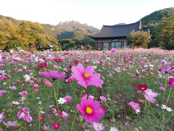 °íÈï Á¦1°æÀÎ ÆÈ¿µ»ê ¾Æ·¡ À§Ä¡ÇÑ ´É°¡»ç´Â º½¿¡´Â ¸ñ·Ã, º¢²É°ú ºÓÀº µ¿¹éÀÌ Àå°üÀ» ÀÌ·ç°í, °¡À»¿¡´Â ´Ùä·Î¿î ÄÚ½º¸ð½º ²É¹çÀÌ ÆîÃÄÁ® ½É½ÅÀÌ ÁöÄ£ ¹æ¹®°´µé¿¡°Ô Àα⸦ ´õÇϰí ÀÖ´Ù.