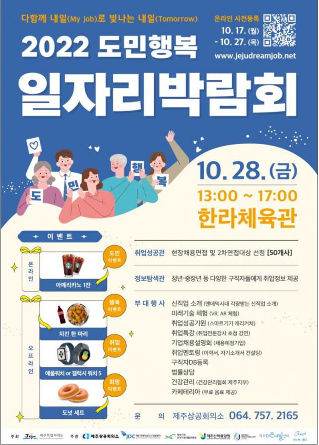 Á¦ÁÖµµ°¡ ÁÖÃÖÇϰí Á¦ÁÖ»ó°øÈ¸ÀÇ¼Ò µî 7°³ ±â°üÀÌ °øµ¿ ÁÖ°üÇÏ´Â À̹ø ÀÏÀÚ¸®¹Ú¶÷ȸ¿¡´Â µµ³» ±ÝÀ¶, È£ÅÚ, °ü±¤ µî ´Ù¾çÇÑ Á÷Á¾ÀÇ 46°³ÀÇ ±â¾÷°ú 23°³ ±â°üÀÌ Âü¿©ÇØ 200¿© ¸í À» ä¿ëÇÒ ¿¹Á¤À¸·Î, ±¸Á÷ÀÚ ´©±¸³ª Âü¿©ÇÒ ¼ö ÀÖ´Ù.