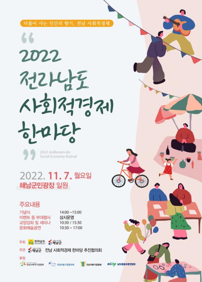 Çà»ç ½½·Î°ÇÀº¡®´õºÒ¾î »ç´Â Àΰ£ÀÇ Çâ±â, Àü³² »çȸÀû°æÁ¦!¡¯ÀÌ´Ù. ±â³ä½ÄÀº µµ¸³±¹¾Ç´ÜÀÇ ½ÄÀüÇà»ç¿Í »çȸÀû°æÁ¦ À¯°øÀÚ Ç¥Ã¢, »çȸÀû°æÁ¦ ½Çõ ¼¾à½Ä, ±âºÎ¹°Ç° Àü´Þ µîÀ¸·Î ÁøÇàµÈ´Ù. ½ÄÈÄÇà»ç·Î »çȸÀû±â¾÷°ú Áö¿ª ´ÜüÀÇ ¹®È¿¹¼ú°ø¿¬ µîÀÌ ÁغñµÆÀ¸¸ç, ¡®»çȸÀû°æÁ¦¿Í ȯ°æ․»çȸ․Åõ¸í °æ¿µ(ESG)¡¯À» ÁÖÁ¦·Î ÇÑ ±³¾ç°ÁÂ¿Í ¡®Àü³² »çȸÀû°æÁ¦ ÆÇ·Î Ȱ¼ºÈ ¹æ¾È¡¯ Æ÷·³ µî ÇмúÇà»çµµ °³ÃÖµÉ ¿¹Á¤ÀÌ´Ù.
