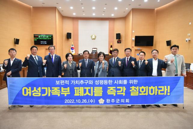 ÀÌÀÇ¿øÀº ¡°±¹³»¡¤¿Ü Á¤¼¼¸¦ ¸ðµÎ µÑ·¯ºÁµµ ¿©¼º°¡Á·ºÎÀÇ ¿ªÇÒ°ú ±â´ÉÀº ¹Ýµå½Ã ÇÊ¿äÇÔ¿¡µµ ¿©¼º°¡Á·ºÎ ÆóÁö¶ó´Â Ä«µå¸¦ ²¨³»µç À±¼®¿ Á¤ºÎ¿¡ °ÇÑ À¯°¨À» Ç¥ÇÑ´Ù¡±¸ç, ¡°¿ì¸® ¹Ì·¡¼¼´ëÀÇ ¹ßÀüÀû ¹Ì·¡¸¦ À§ÇØ ¿©¼º°¡Á·ºÎ ÆóÁö¸¦ öȸÇÏ°í ±× ±â´ÉÀ» ´õ¿í °ÈÇØ ´Þ¶ó¡±°í Ã˱¸Çß´Ù.
