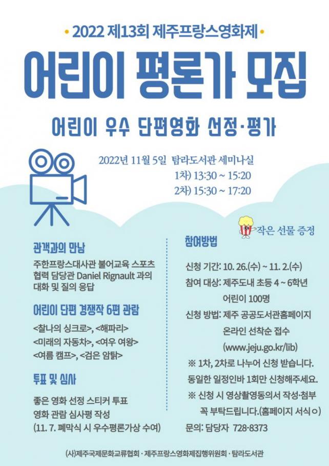 ¾î¸°ÀÌ Æò·Ð°¡·Î Âü¿©¸¦ ¿øÇÏ´Â ¾î¸°ÀÌ´Â 11¿ù 2ÀϱîÁö °ø°øµµ¼°ü ȨÆäÀÌÁö(www.jeju.go.kr/lib/)¿¡¼ ¼±Âø¼øÀ¸·Î Á¢¼öÇÒ ¼ö ÀÖ´Ù.