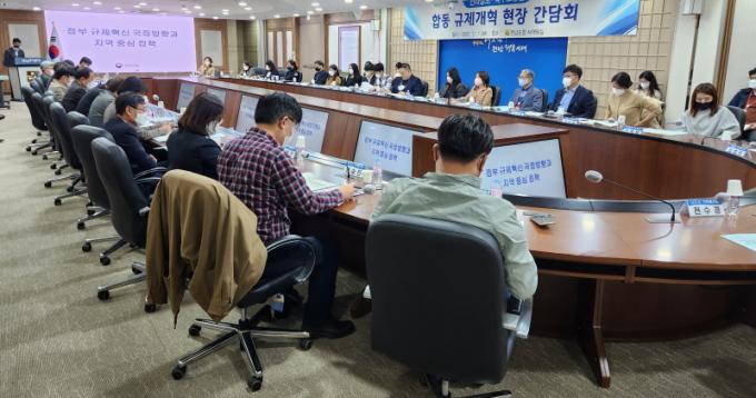 ±èºÀ±Õ Àü³²µµ ¹ý¹«´ã´ç°üÀº ¡°°£´ãȸ¿¡¼ ³íÀÇÇÑ ±ÔÁ¦ ¾È°ÇÀº ±¹¹«Á¶Á¤½Ç°ú ±ä¹ÐÇÏ°Ô ÇùÁ¶ÇØ °³¼±À» ÃßÁøÇϰí, Áö¼ÓÀûÀ¸·Î ¼Ò»ó°øÀÎ ¹× Áß¼Ò±â¾÷ÀÇ ÇöÀå ¸ñ¼Ò¸®¿¡ ±Í ±â¿ï¿© ±ÔÁ¦ ¾Ö·Î»çÇ×À» ¹ß±¼, °³¼±Çϰڴ١±°í ¸»Çß´Ù.