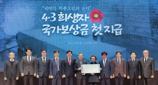 Á¦ÁÖÆ¯º°ÀÚÄ¡µµ´Â ¡¸4¡¤3Ưº°¹ý¡¹ÀÌ Á¦Á¤µÈ Áö 22³â ¸¸ÀÌÀÚ 4¡¤3 74ÁÖ³âÀ» ¸Â¾Æ 7ÀϺÎÅÍ º¸»ó±Ý Áö±ÞÀÌ °áÁ¤µÈ »ýÁ¸Èñ»ýÀÚ¡¤À¯Á· µî ÃÑ 300¸í¿¡°Ô 1Àδç ÃÖ´ë 9,000¸¸ ¿øÀÇ ±¹°¡º¸»ó±ÝÀ» Áö±ÞÇÑ´Ù°í ¹àÇû´Ù. Áö³ 10¿ù 27ÀÏ Á¦ÁÖ4¡¤3»ç°Ç Áø»ó±Ô¸í ¹× Èñ»ýÀÚ ¸í¿¹È¸º¹À§¿øÈ¸ º¸»ó½ÉÀǺаúÀ§¿øÈ¸(ÀÌÇÏ 4¡¤3Áß¾ÓÀ§¿øÈ¸)°¡ º¸»ó±ÝÀ» ½ÅûÇÑ 304¸í Áß 300¸í¿¡ ´ëÇØ 252¾ï 5,000¸¸ ¿øÀÇ ±¹°¡º¸»ó±ÝÀ» óÀ½À¸·Î Áö±ÞÇϱâ·Î °áÁ¤À» ³»¸° Áö 11ÀÏ ¸¸ÀÌ´Ù.