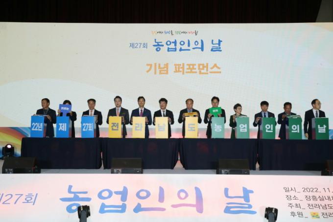 ±â³ä½ÄÀº Á¦27ȸ ³ó¾÷ÀÎÀÇ ³¯ À¯°øÀÚ Ç¥Ã¢, Àü¶ó³²µµ ³ó¾÷ÀÎ ´ë»ó ǥâÆÐ ¼ö¿©, ³óÁ¤¹ßÀü ¹ßÀüÀ¯°ø, ³óÁ¤¾÷¹« Æò°¡ ¿ì¼ö ½Ã±º ½Ã»ó, ÃàÇϰø¿¬, ÆÛÆ÷¸Õ½º ¼øÀ¸·Î ÁøÇàµÆ´Ù.