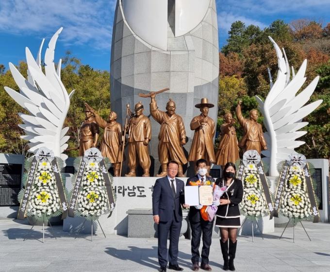 ±â³ä½Ä¿¡´Â ¹®±ÝÁÖ Àü³²µµ ÇàÁ¤ºÎÁö»ç, Àü°æ¼± Àü³²µµÀÇȸ ºÎÀÇÀå, À¯Çü¼± ¼ºÎº¸ÈÆÁöûÀå, º¸ÈÆ´ÜüÀå, ±¤º¹È¸¿ø µî 100¿© ¸íÀÌ Âü¼®ÇØ ¼ø±¹¼±¿°ú È£±¹¿µ·ÉÀÇ Èñ»ýÁ¤½ÅÀ» ±â·È´Ù.