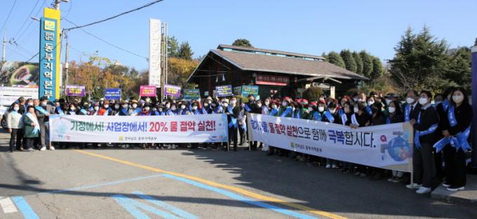 À̾îÁø ÇöÀå Ä·ÆäÀο¡´Â ¼øÃµ ÆÈ¸¶¿À°Å¸®, ¼øÃµ¿ª, ¿ªÀü½ÃÀå, ¿©¼ö»ê´Ü ÀÏ¿ø¿¡¼ µµ․½Ã±º °øÁ÷ÀÚ, ¿©¼ö»ê´Ü±â¾÷ÇùÀÇȸ, Àü³²È¯°æ»ê¾÷ÇùÀÇȸ µî ¹Î°£´Üü ȸ¿ø 200¿© ¸íÀÌ Âü¿©Çß´Ù. À̵éÀº ¹° Àý¾à ±¸È£¿Í ÇÔ²² ¡®°¡¹³ ±Øº¹À» À§ÇÑ 20% ¹° Àý¾à ½Çõ¹æ¾È¡¯ È«º¸ Àü´ÜÁö¸¦ ¹èºÎÇϸç Àü µµ¹Î ¹° Àý¾à ½Çõ Âü¿©¸¦ ´çºÎÇß´Ù.