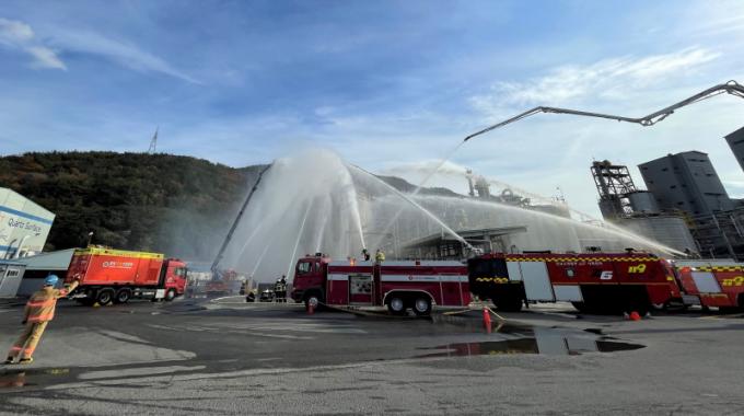 Àü³²µµ ÇöÀå ÁßÁ¡ÈÆ·ÃÀº 25ÀÏ ¿©¼ö±¹°¡»ê´Ü ·Ôµ¥ÄɹÌÄ® ÷´Ü¼ÒÀç °øÀå¿¡¼ ÁøÇàµÆ´Ù. °í¾Ð°¡½º ´©Ãâ¿¡ µû¸¥ ÈÀç Æø¹ß»ç°í ½Ã À¯°ü±â°ü°úÀÇ ÇÕµ¿ÈÆ·ÃÀ¸·Î »ç°í´ëÀÀ ¹× ¼ö½À´É·Â Çâ»óÀ» ²ÒÇØ È¿À²Àû Àç³ ´ëÀÀü°è¸¦ ±¸ÃàÇϱâ À§ÇÑ ÈÆ·ÃÀÌ´Ù. Àü³²µµ, ¿©¼ö½Ã, ¿©¼ö¼Ò¹æ¼, ¿©¼öÈÇÐÀç³ÇÕµ¿¹æÀç¼¾ÅÍ µî 18°³ ±â°ü °ü°èÀÚ 200¿© ¸í°ú 30Á¾ 80¿© Á¡ÀÇ Àåºñ°¡ µ¿¿øµÆ´Ù.