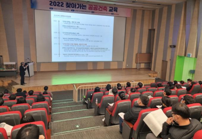 °ÇÃà°ø°£¿¬±¸¿ø ±¹°¡°ø°ø°ÇÃàÁö¿ø¼¾ÅͰ¡ ÁÖÃÖÇϰí Àü³²µµ°¡ ÁÖ°üÇÑ À̹ø ±³À°¿£ ½Ã±º °ü°è°ø¹«¿ø ¹× °ÇÃà»ç 150¿© ¸íÀÌ Âü¼®ÇØ ÃÖ±Ù °ø°ø°ÇÃà µ¿ÇâÀ» °øÀ¯Çß´Ù.