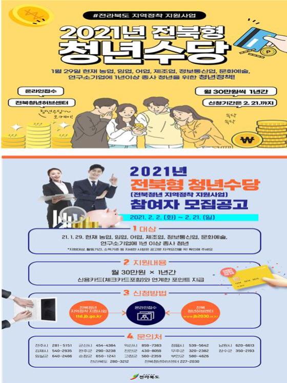 ¿ÃÇØ ÀüºÏµµ´Â ÀüºÏÇü û³â¼ö´çÀÇ Áö¿øÀ» Å©°Ô È®´ëÇÑ´Ù. ±âÁ¸ÀÇ ³ó¾÷, Áß¼Ò Á¦Á¶¾÷, ¹®È¿¹¼úÀÎÀ» ºñ·ÔÇØ ÀÓ¾÷?¾î¾÷, Á¤º¸Åë½Å¾÷, ¿¬±¸°³¹ß¾÷±îÁö ´ë»ó ºÐ¾ß¸¦ È®´ëÇÑ´Ù. ¶ÇÇÑ, ¼Òµæ¼öÁصµ ÁßÀ§¼Òµæ 150%±îÁö ¿ÏÈÇϰí Áö±Þ ´ë»óÀº µÎ ¹è·Î ´Ã·Á, 1,000¸í¿¡°Ô ¿ù 30¸¸¿ø¾¿ 1³â°£ Áö¿øÇÑ´Ù.