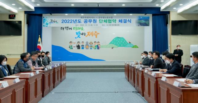 À̳¯ ¿ÀÈÄ 2½Ã Á¦ÁÖµµÃ» ޶óȦ¿¡¼ ¿¸° ¡®2022³âµµ °ø¹«¿ø ´ÜüÇù¾à ü°á½Ä¡¯¿¡´Â ³ë»ç ´ëÇ¥±³¼·À§¿øÀÎ ¿À¿µÈÆ µµÁö»ç¿Í ¿ÀÅ层 Á¦ÁÖÆ¯º°ÀÚÄ¡µµ°ø¹«¿ø³ëµ¿Á¶ÇÕ À§¿øÀåÀ» ºñ·ÔÇØ ³ëÁ¶ Ãø ±³¼·À§¿ø°ú µµ ¹× ÇàÁ¤½Ã ±³¼·À§¿øÀÌ Âü¼®Çß´Ù.
