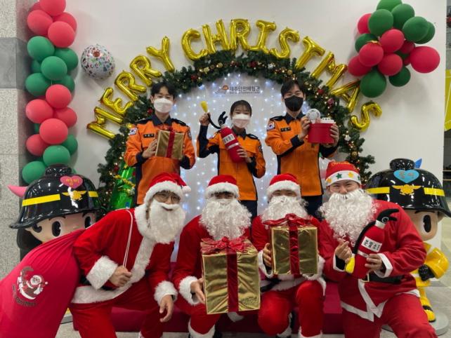 üÇè°ü ³»ºÎ¿¡ ¸¶·ÃµÈ Å©¸®½º¸¶½º Æ÷ÅäÁ¸¿¡¼ 119»êŸ·Î ºÐÀåÇÑ ¼Ò¹æ°ü°ú ÇÔ²² ÂïÀº »çÁøÀ¸·Î ¡®¾ÈÀü ´ÙÁü ¹èÁö¡¯¸¦ ¸¸µé¾î Á¦°øÇϰí, Å©¸®½º¸¶½º ¹Ì´Ï Æ®¸® ¹«µåµî ¸¸µé±â üÇèµµ ÇÔ²² ÁøÇàÇÑ´Ù. 23ÀÏ¿¡´Â Á¦ÁÖÇ×°ø ½Â¹«¿ø°ú ¼Ò¹æ°ü »êŸ¿Í ÇÔ²²ÇÏ´Â Ç×°ø±â Ưº° üÇè±³À°À» ¿î¿µÇϸç, üÇèÀÌ Á¾·áµÇ¸é ¼ÒÁ¤ÀÇ ¼±¹°µµ Á¦°øÇÒ °èȹÀÌ´Ù. ¶ÇÇÑ Ã»»ç ³» ¼³Ä¡µÈ ´ëÇüLED½ºÅ©¸°À» Ȱ¿ëÇÑ ¿µ»ó »ó¿µ°ú Å©¸®½º¸¶½º ij·² À½¾Ç ¼ÛÃâ·Î ¿¬¸» ºÐÀ§±â¸¦ Á¶¼ºÇÏ´Â ÇÑÆí, û»ç ¿ÜºÎ¿¡´Â ·çµ¹ÇÁ °ñ¸ñ±æ ¼Ò¹æÂ÷¿Í Á¶¸í Áö±¸º» µî ±â³ä ÃÔ¿µ °ø°£µµ ¸¶·ÃÇß´Ù.