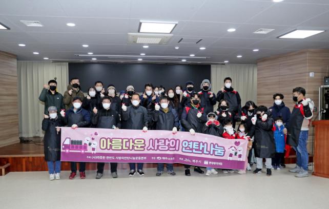 Á¦ÁÖÀÇ ¼Ò¸®(°øµ¿´ëÇ¥ÀÌ»ç ¹®¼ºÀ±,±è¼ºÁø)¿Í (»ç)µû¶æÇÑ Çѹݵµ »ç¶ûÀÇ ¿¬Åº³ª´®¿îµ¿º»ºÎ(»ç¹«ÃÑÀå ¿ø±âÁØ)ÀÇ °øµ¿ÁÖ°üÀ¸·Î ÃßÁøµÈ À̹ø ºÀ»ç Ȱµ¿Àº °Ü¿ïö ÇÑÆÄ·Î ¾î·Á¿òÀ» °Þ°í ÀÖ´Â Àú¼Òµæ ¿¬Åº »ç¿ë ÀÌ¿ôµéÀÇ µû¶æÇÑ °Ü¿ï³ª±â¸¦ µ½±â À§ÇØ ¸¶·ÃµÆ´Ù.