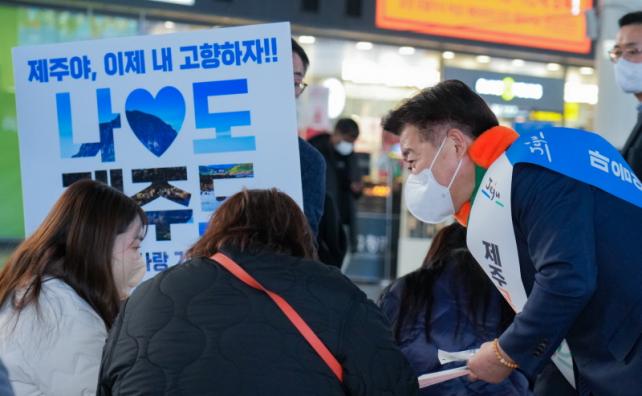 ¿À¿µÈÆ Áö»ç´Â ºÎ»ê¿ªÀ» ÀÌ¿ëÇÏ´Â ºÎ»ê½Ã¹Î°ú °ü±¤°´µé¿¡°Ô ¡®Á¦ÁÖ °íÇâ»ç¶û±âºÎÁ¦¡¯ ¹®±¸°¡ »õ°ÜÁø ¸¶½ºÅ©¿Í È«º¸ Ã¥ÀÚ¸¦ Á÷Á¢ Àü´ÞÇϰí, Á¦ÁÖ¿¡ ±âºÎÇÏ¸é ¼¼¾×°øÁ¦¿Í ÇÔ²² °¨±Ö, ÈæµÅÁö, °¥Ä¡ µî Àü±¹ ÃÖ°í ¼öÁØÀÇ Æ¯»êǰÀ» ´ä·ÊǰÀ¸·Î ¹ÞÀ» ¼ö ÀÖ´Ù´Â Á¡À» ÇÇ·ÂÇÏ¸ç ±âºÎȰµ¿À» µ¶·ÁÇß´Ù.