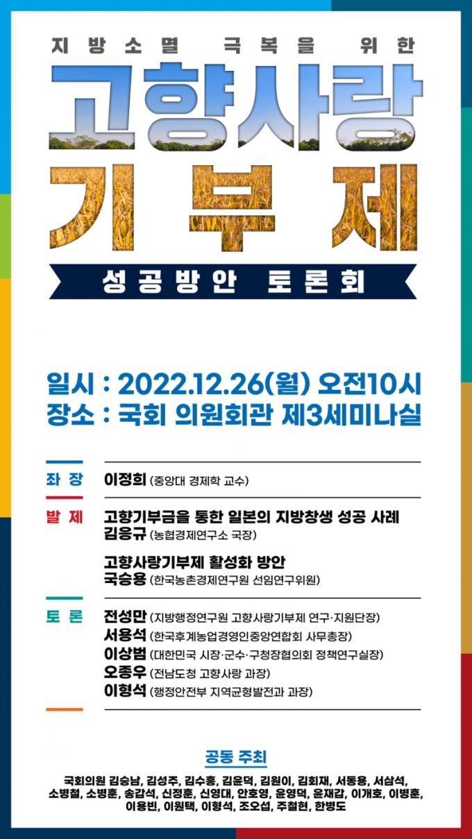 ³»³â 1¿ù °íÇâ»ç¶û±âºÎÁ¦ ½ÃÇàÀ» ¾ÕµÎ°í ¿¸° Åä·Ðȸ´Â ¡âÀÌÁ¤Èñ(Áß¾Ó´ëÇб³ °æÁ¦Çаú ±³¼ö)¸¦ ÁÂÀåÀ¸·Î, ¡â±èÀÀ±Ô(³óÇù°æÁ¦¿¬±¸¼Ò ±¹Àå)ÀÇ ¡®°íÇâ±âºÎ±ÝÀ» ÅëÇÑ ÀϺ»ÀÇ Áö¹æÃ¢»ý ¼º°ø»ç·Ê¡¯¿Í ¡â±¹½Â¿ë(Çѱ¹³óÃ̰æÁ¦¿¬±¸¿ø ¼±ÀÓ¿¬±¸À§¿ø)ÀÇ ¡®°íÇâ»ç¶û±âºÎÁ¦ Ȱ¼ºÈ ¹æ¾È¡¯À» ÁÖÁ¦·Î ¹ßÁ¦°¡ ÀÌ·ç¾îÁø´Ù.