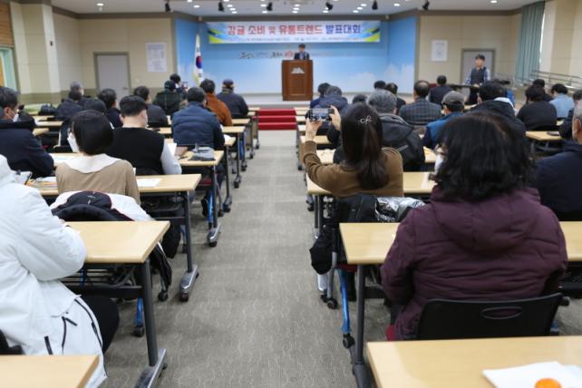 ³ó¾÷ÀÎ, À¯ÅëÁ¾»çÀÚ, ¿¬±¸‧Áöµµ°ø¹«¿ø µî 100¿© ¸íÀÌ Âü¼®ÇÑ °¡¿îµ¥ ¼Òºñ ¹× À¯Åë½ÃÀå Æ®·»µå¸¦ »ìÆìº¸°í ½ÃÀ庯ȸ¦ °í·ÁÇÑ »êÁö´ëÀÀ ¹æ¾È ¹× ¸¶ÄÉÆÃ ¹æÇâÀ» ¸ð»öÇÏ´Â ½Ã°£À» °¡Á³´Ù.