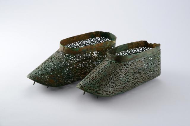 ±Ýµ¿½Å¹ßÀÇ Àüü ÇüÅ´ ¹ß¸ñ±êÀ» °®Ãè°í ¾ÕÂÊÀº »ÏÁ·ÇÏ¸é¼ ¾à°£ À§·Î µé·È°í, Áß°£ ¹Ù´Ú¸éÀº ÆíÆòÇϸç, µÚÂÊÀº ¾à°£ Á¼¾ÆÁ® µÕ±Ù ÆíÀ¸·Î ¸¶Ä¡ ¹è ¸ð¾çÀ» ¶í´Ù. ¹ßµî°ú µÚ²ÞÄ¡¸¦ 2°³ÀÇ ¿·ÆÇÀ¸·Î °áÇÕÇÏ¿´°í, ¹Ù´Ú°ú ¿·¸é µî Àüü¸¦ ÅõÁ¶(÷âðÁ, ¸Â»õ±è)·Î ¸¸µé¾ú´Ù. ¹Ù´Ú¿¡´Â ½ºÆÄÀÌÅ© ¸ð¾çÀ¸·Î µÈ ±Ýµ¿ ¸ø 18°³¸¦ ºÎÂøÇß´Ù. ºÎÂøµÈ °÷¿¡´Â ¿¬²É¹«´Ì·Î Àå½ÄÇÏ´Â µî ¸¶ÇÑ~¹éÁ¦Áö¿ª ±Ýµ¿½Å¹ßÀÇ Æ¯Â¡°ú ´ç½ÃÀÇ Á¤±³ÇÑ ±Ý¼Ó°ø¿¹ ±â¼ú¼öÁØÀ» Àß º¸¿©ÁØ´Ù.