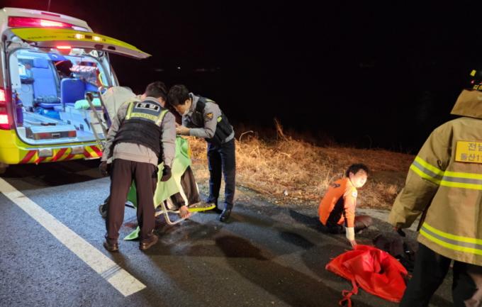 ½Å°í¸¦ ¹Þ°í ÇöÀå¿¡ Ã⵿ÇÑ ¿©¼ö¼Ò¹æ¼ ±¸Á¶´ë´Â Â÷·®¿¡¼ ºüÁ®³ª¿Í ÀǽÄÀÌ ¾ø´Â »óÅ·ΠºÎÇ¥¿¡ °ÉÃÄÀÖ´Â ¹Ú ¾¾¸¦ ¾ÈÀüÇÏ°Ô ±¸Á¶Çϰí Â÷·® ³»ºÎ¸¦ È®ÀÎ, ´Ù¸¥ ÇÇÇØÀÚ´Â ¾ø´Â °ÍÀ» È®ÀÎÇß´Ù. ¹Ú ¾¾´Â Àα٠º´¿øÀ¸·Î ¿Å°ÜÁ® ÀǽÄÀ» ȸº¹Çß´Ù.