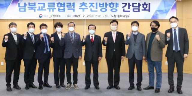 ÇÑÆí, ÀüºÏµµ´Â À̳¯ °£´ãȸ¿¡¼ ¿ÃÇØ 6¿ù Áß ¡®±¹Á¦ űǵµ ÄÁÆÛ·±½º¡¯ °³ÃÖ¿Í ³²ºÏ±³·ù Àç°³ ´ëºñ ÁöÀÚü°¡ Á÷Á¢ ÀεµÀû ´ëºÏÁö¿ø »ç¾÷ ÃßÁøÀÌ °¡´ÉÇϵµ·Ï ¡®´ëºÏÁö¿ø»ç¾÷ÀÚ¡¯ ÁöÁ¤ ½Åû°ú °ü·ÃÇØ¼ ÅëÀϺÎÀÇ ÇùÁ¶¸¦ ¿äûÇß´Ù.