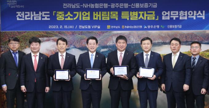 ¡®Áß¼Ò±â¾÷ ¹öÆÀ¸ñ Ưº°ÀÚ±Ý Áö¿ø Çù¾à¡¯Àº °í±Ý¸® ¼Ó¿¡¼ ÀÚ±Ý ºÎ´ãÀ» °Þ´Â Áß¼Ò±â¾÷ÀÇ ÀÌÀÚ ºÎ´ã ¿Ïȸ¦ À§ÇØ ÁöÀÚü¿Í ±ÝÀ¶±ÇÀÌ ¼ÕÀ» ¸ÂÀâÀº Àü±¹ ÃÖÃÊ ¼±µµÀû ±ÝÀ¶Çù·Â¸ðµ¨ÀÌ´Ù. Çù¾à½Ä¿¡´Â ±è¿µ·Ï Àü³²µµÁö»ç¿Í Á¤ÀçÇå NH³óÇùÀºÇà Àü³²º»ºÎÀå, °íº´ÀÏ ±¤ÁÖÀºÇàÀå, ±èÃæ¹è ½Å¿ëº¸Áõ±â±Ý Àü¹«À̻簡 Âü¼®Çß´Ù.