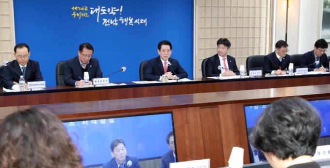 ±è¿µ·Ï Áö»ç´Â À̳¯ ¿ÀÀü µµÃ» ¼ÀçÇʽǿ¡¼ ½Ç±¹ Á¤Ã¥È¸ÀǸ¦ ¿¾î ¡°¿¬·áºñ »ó½Â µîÀ¸·Î ¹ö½º µî ´ëÁß±³ÅëÀ» ºñ·ÔÇÑ °ø°ø¿ä±Ý Àλó ¾Ð¹ÚÀÌ Å« »óȲ¡±À̶ó¸ç ¡°°í¹°°¡․°í±Ý¸®․°íȯÀ² µî ¡®3°í¡¯·Î ¾î·Á¿î µµ¹Î ºÎ´ã ¿Ïȸ¦ ÃÖ¿ì¼±À¸·Î °í·ÁÇϰí, µµ¿¡¼ À¯·ùºñ Áõ°¡ºÐÀÇ 30%¸¦ ÀçÁ¤Áö¿øÇØÁÖ´Â Á¡À» °¨¾ÈÇØ °¡´ÉÇÏ¸é ¿Ã¸®Áö ¾Êµµ·Ï Àß °ËÅäÇÏ±æ ¹Ù¶õ´Ù¡±°í ¸»Çß´Ù.