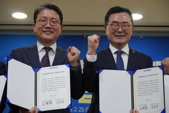 ÇÑÆí, 23ÀÏ ±¹È¸ ÀÇ¿øÈ¸°ü¿¡¼ ¿¸° ¡®Àü±¹Á¤´çÀ§¿øÈ¸ ¹ß´ë½Ä ¹× Á¦2±â Çù·ÂÀÇ¿ø´Ü Çù¾à½Ä¡¯Àº ÀÌÀç¸í ´ç´ëÇ¥¿Í ´ë±¸‧°æºÏ Áö¿ªÀ§ 25°÷ À§¿øÀå µîÀÌ Âü¼®ÇÏ´Â µî ¼ºÈ²¸®¿¡ °³ÃֵǾú´Ù.