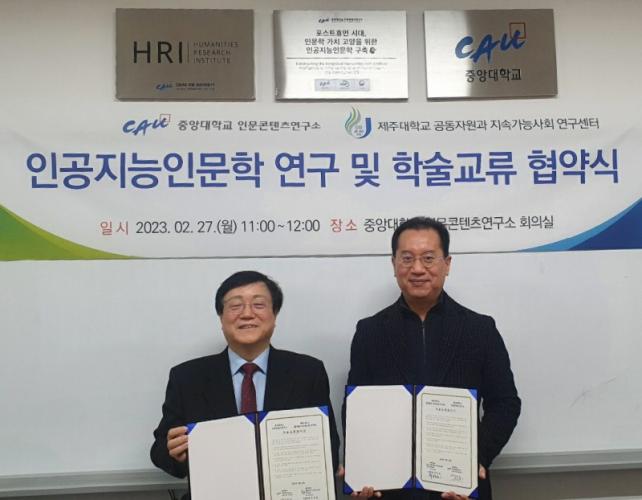 Áß¾Ó´ë ¿¬±¸¼Ò ȸÀǽǿ¡¼ °³ÃÖµÈ Çù¾à½Ä¿¡´Â Á¦ÁÖ´ë ¿¬±¸¼¾ÅÍ Á¤Ã¢¿ø ºÎ¼¾ÅÍÀå°ú Áß¾Ó´ë ¿¬±¸¼Ò ÀÌÂù±Ô ¼ÒÀå ¹× Á¦ÁÖ´ë ¿¬±¸¼¾ÅÍ, Áß¾Ó´ë ¿¬±¸¼ÒÀÇ ¿¬±¸¿øµéÀÌ Âü¼®ÇØ ÇâÈÄ Çмú±³·ù ¹æÇâÀ» ³íÀÇÇß´Ù.