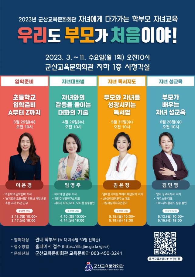 ¾ÕÀ¸·Î ¿î¿µÇÏ´Â Çкθð Àڳ౳À°Àº ±º»ê±³À°¹®Èȸ°ü ȨÆäÀÌÁö¿Í SNS¸¦ ÅëÇØ È®ÀÎÇØ º¼ ¼ö ÀÖÀ¸¸ç, ¼ö°½ÅûÀº 13ÀÏ(¿ù)ºÎÅÍ ±º»ê±³À°¹®Èȸ°ü ´©¸®Áý(https://lib.jbe.go.kr/gec/)¿¡¼ ÁøÇàÇÑ´Ù.