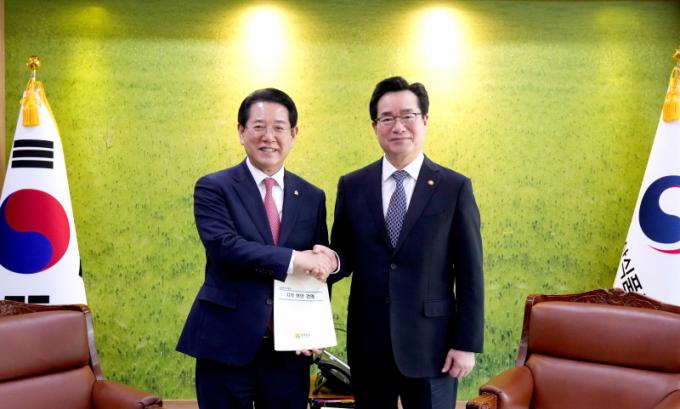 °£´ãȸ¿¡´Â ±ÇÀçÇÑ ³ó½ÄǰºÎ ³ó¾÷Çõ½ÅÁ¤Ã¥½ÇÀå, °È¿¼® Àü³²µµ ³óÃà»ê½Äǰ±¹Àå µîÀÌ ÇÔ²² Âü¼®Çß´Ù. ±è¿µ·Ï Áö»ç´Â ÀÌ ÀÚ¸®¿¡¼ ¡°ÀÌÁ¦ ´ëÇѹα¹ ³ó¾÷µµ ÷´Ü³ó»ê¾÷ ±â¼ú(¾Ö±×Å×Å©)À» ±â¹ÝÀ¸·Î ÇÏ´Â µðÁöÅÐ ³ó¾÷°ú ¼öÃâ Áß½ÉÀ¸·Î ´ëÀüȯÀÌ ÇÊ¿äÇÏ´Ù¡±¸ç ¡°À̸¦ ½ÇÇöÇϱâ À§ÇØ Àü³²ÀÌ ÃßÁøÇÏ´Â ÀΰøÁö´É ÷´Ü ³ó»ê¾÷À¶º¹ÇÕÁö±¸ Á¶¼º ¹× ±¹Á¦À¯±â³ó½Äǰ ¼öÃâÇ÷§Æû ±¸Ãà»ç¾÷ µî¿¡ ÀüÆøÀû Áö¿øÀ» ¹Ù¶õ´Ù¡±°í ¿äûÇß´Ù.