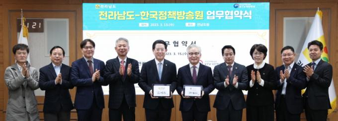 Àü³²µµ´Â 15ÀÏ µµÃ» Á¤¾à¿ë½Ç¿¡¼ ±è¿µ·Ï Àü³²µµÁö»ç, ÇÏÁ¾´ë Çѱ¹Á¤Ã¥¹æ¼Û¿øÀå µî °ü°èÀÚ 10¿© ¸íÀÌ Âü¼®ÇÑ °¡¿îµ¥ ¡®¿µ»óÄÜÅÙÃ÷ °øÀ¯ ¹× È«º¸Çù·Â¡¯ Çù¾àÀ» Çß´Ù. Çù¾à¿¡ µû¶ó Àü³²µµ´Â °æÁ¦․°ü±¤․¹®È µî ´Ù¾çÇÑ ºÐ¾ß È«º¸¿µ»ó°ú ¿ª»çÀû °¡Ä¡¸¦ °¡Áø ¿µ»ó±â·ÏÀ» °øÀ¯ÇÑ´Ù. ¶Ç KTV ±¹¹Î¹æ¼Û Á¦ÀÛ ÇÁ·Î±×·¥ À¯Ä¡¿Í ÃÔ¿µ Áö¿øÀ¸·Î ¿ì¼öÇÑ °ü±¤ÀÚ¿ø°ú Á¤Ã¥ µî Àü³²ÀÇ À¯ÀÍÇÏ°í ´Ù¾çÇÑ Á¤º¸¸¦ Àü±¹ ½ÃûÀÚ¿¡°Ô Á¦°øÅä·Ï ÇÒ ¿¹Á¤ÀÌ´Ù.