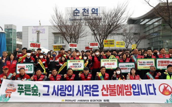 [È£³²µµ¹Î½Å¹® = ÀÓÀ±Áø ±âÀÚ] Àü¶ó³²µµ´Â 17ÀÏ ¼øÃµ¿ª ±¤Àå¿¡¼­ »êºÒ·ÎºÎÅÍ µµ¹ÎÀÇ »ý¸í°ú Àç»êÀ» Áö۱â À§ÇÑ ¡®º½Ã¶ »êºÒ¿¹¹æ Ä·ÆäÀΡ¯À» °³ÃÖÇÏ°í »êºÒ ¿¹¹æ °ü½É°ú Âü¿©¸¦ ¿äûÇß´Ù.   À̳¯ Ä·ÆäÀο¡´Â Àü³²µµ¿Í ¼øÃµ½Ã, ¼øÃµ±¹À¯¸²°ü¸®¼Ò, (»ç)½£¼ÓÀÇ Àü³², ÀÓ¾÷ÀÎ, »õ¸¶À»È¸ µî 100¿© ¸íÀÌ Âü¼®ÇØ ¡®»êºÒ¿¹¹æ ½Çõ»çÇס¯°ú ¡®½º¸¶Æ®Æù »êºÒ ½Å°í ¿ä·É¡¯À» ´ãÀº Àü´ÜÁö¸¦ ¹èºÎÇϸ鼭 »êºÒ À§Ç輺À» Àû±Ø ¾Ë·È´Ù.   ƯÈ÷, ¡®»êºÒ ¿¹¹æ ½Çõ»çÇס¯À¸·Î ¡ã³í․¹çµÎ··À̳ª °¢Á¾ ¾²·¹±â ¼Ò°¢ ±ÝÁö ¡ã»ê¸² ¿¬Á¢Áö Èí¿¬À̳ª ºÒ¾¾ ´Ù·ç´Â ÇàÀ§ ±ÝÁö ¡ãÀÔ»êÀÚ ÀÎÈ­¹°Áú ¼ÒÁö ±ÝÁö ¡ã»êºÒ ¹ß°ß ½Ã Áï½Ã 119³ª °üÇÒ »ê¸²ºÎ¼­, »ê¸²ÀçÇØ¾Û¿¡ ½Å°í µîÀ» Àû±Ø È«º¸Çß´Ù.   Àü³²µµ´Â ¿ÃÇØ »êºÒ ¹æÁö´ëÃ¥À» Á¶±â ¼ö¸³ÇÏ°í ¿¹³âº¸´Ù 1°³¿ù °¡·® ¾Õ´ç±ä 1¿ù 5ÀϺÎÅÍ »êºÒ¹æÁö´ëÃ¥º»ºÎ¸¦ ±¸¼º‧¿î¿µÇØ »êºÒ Àç³­ ´ëÀÀ¿¡ ÃÖ¼±À» ´ÙÇϰí ÀÖ´Ù. ¶Ç ½Å¼ÓÇÑ Ãʵ¿ ÁøÈ­¸¦ À§ÇØ ÁøÈ­Çï±â 14´ë¿Í ÁøÈ­Àη 1õ34¸í, ÁøÈ­Àåºñ 5¸¸ 4õ Á¡ µî °¡¿ëÀÚ¿øÀ» Ãѵ¿¿øÇÏ°í »ê¸²‧¼Ò¹æ‧°æÂû µî°ú ½Å¼ÓÇÑ °øÁ¶Ã¼°è¸¦ ±¸ÃàÇß´Ù.   ÇÑÆí, ¾È»óÇö Àü³²µµ ȯ°æ»ê¸²±¹ÀåÀº ¡°³í‧¹çµÎ··, ¿µ³ó ºÎ»ê¹° ¼Ò°¢À» ÀÏÀý ±ÝÁöÅä·Ï ÇÏ°í »ê¸²º¸È£¹ý À§¹ÝÀÚ´Â ¾öÁß Ã³¹úÇØ °æ°¢½ÉÀ» Àϱú¿ì°Ú´Ù¸ç, »ê¸²Àº ¹°·Ð µµ¹ÎÀÇ »ý¸í°ú Àç»êÀ» ÁöŰ´Â »êºÒ ¿¹¹æÈ°µ¿¿¡ µµ¹ÎÀÇ Àû±ØÀûÀÎ Âü¿©¿Í ÇùÁ¶ ¹Ù¶õ´Ù¡±°í ´çºÎÇß´Ù.