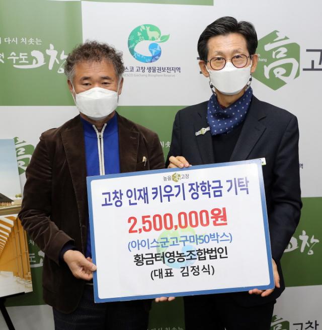 ¹«Àå¸é Ȳ±ÝÅÍ¿µ³óÁ¶ÇÕ¹ýÀÎ(´ëÇ¥ ±èÁ¤½Ä)¿¡¼ °íâ(¼¿ï, ÀüÁÖ) ÀåÇм÷¿¡ °ÅÁÖÇÏ´Â ÇлýµéÀÇ °£½ÄÀ¸·Î »ç¿ëÇØ´Þ¶ó¸ç ¾ÆÀ̽º±º°í±¸¸¶ 1050ºÀÁö(250¸¸¿ø»ó´ç)¸¦ ±âŹÇß´Ù.