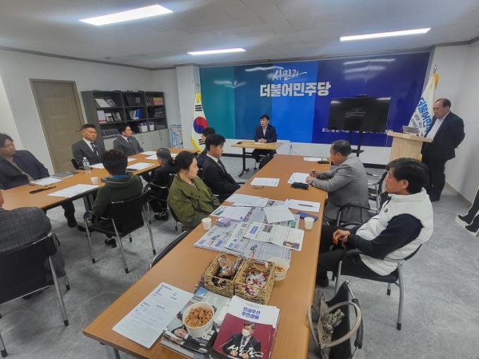ÇÑÆí À̳¯ °£´ãȸ¿¡¼ ±èÅÂ±Õ Àü³²µµÀÇȸ ºÎÀÇÀå°ú 3¸íÀÇ µµÀÇ¿ø ¹× ¼¿µ¹è ±¤¾ç½ÃÀÇȸ ÀÇÀåÀ» ºñ·ÔÇÑ 8¸íÀÇ ½ÃÀÇ¿øÀÌ Âü¼®Çß´Ù. °£´ãȸ¿¡¼´Â ±¤¾ç½ÃÀÇȸ ÀÓ½Ãȸ ¾È°Ç º¸°í, Ȳ±ÝÁö±¸ Æó±â¹°Ã³¸®¾÷ü ÀÔÁÖ¿Í °ü·ÃµÈ ¹Î¿ø µîµµ Æø³Ð°Ô ³íÀǵƴÙ.
