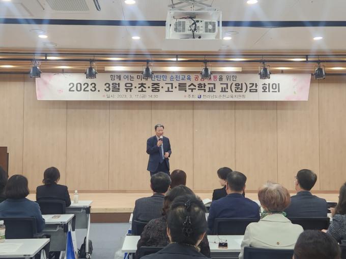 ȸÀÇ¿¡ Âü¼®ÇÑ ¼øÃµÀξÈÃÊ Àü°èÀÚ ±³°¨Àº ¡°Á÷Á¢ ¼øÃµ±³À°ÀÇ ÁÖ¿ä¾÷¹«À» ¾È³»¹Þ°í, ¶Ç ÀüÀÔÇÑ ±³(¿ø)°¨ ¼±»ý´ÔµéÀ» 3¿ù¿¡ ¸¸³ª´Â ÀÚ¸®¸¦ °®°Ô ÇØÁ༠Á¤¸» °¨»çÇÏ´Ù¡±°í ¸»ÇßÀ¸¸ç, ¡°¼øÃµ±³À°ÀÌ ÇöÀå¿¡¼ ¾ÈÂøµÉ ¼ö ÀÖµµ·Ï Çб³¿¡¼µµ ÃÖ¼±ÀÇ ³ë·ÂÀ» Çϰڴ١°°í ¸»Çß´Ù. ÇÑÆí, ÀÓÁ¾À± ±³À°ÀåÀº Àλ縻À» ÅëÇØ ¡®°øºÎÇÏ´Â Çб³ ºÐÀ§±â Á¶¼ºÀ» ÅëÇÑ ½Ç·Â ¼øÃµ ¸¸µé±â¡¯¿¡ ÇÔ²²ÇØ ÁÙ °ÍÀ» ºÎŹÇϸç, ±³»çÀÇ Àڱ⠿¬Âù°ú Æò°¡¸¦ ÅëÇÑ ±³¼ö・ÇнÀ ¹æ¹ý °³¼±, »ý°¢ÇÏ´Â ÈûÀ» Ű¿ì´Â µ¶¼Àι®±³À°, °øÁ¸±³À°À» ÅëÇÑ ÁßÇб³ ±³À°·Â Á¦°í¿¡ Èû½á ÁÙ °ÍÀ» ´çºÎÇß´Ù.