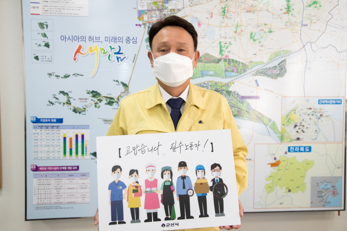 °ÀÓÁØ ±º»ê½ÃÀåÀº ¡°Äڷγª19·Î ¾î·Æ°í Èûµç »óȲ¿¡¼µµ ¿ì¸® ¸ðµÎÀÇ ¾ÈÀü°ú ÀÏ»óÀ» Áö۱â À§ÇØ ÇöÀå¿¡¼ Çå½ÅÇÏ°í °è½Ã´Â Çʼö³ëµ¿ÀÚ ¿©·¯ºÐµéÀÇ ³ë°í¿¡ Áø½ÉÀ¸·Î °¨»çµå¸°´Ù.¡±°í ÀüÇß´Ù.