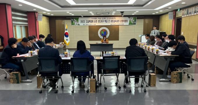À̳¯ ȸÀÇ¿¡¼´Â 2023³â ¼±µµÁö±¸ ÁÖ¿ä »ç¾÷À» Áö¿ª °øÀ¯ÇнÀ ü°è ±¸Ãà, ´ÜÀ§Çб³ ±³À°¿ª·® °È, Çб³ °£ °øµ¿±³À°°úÁ¤, Áö¿ª ¿¬°è °øµ¿±³À°°úÁ¤, Á¤Ã¥ ÀÌÇØµµ Á¦°í ¼øÀ¸·Î ¾È³»Çϰí, ¼¼ºÎ »ç¾÷º° ¾÷¹« ÇùÀǰ¡ ÁøÇàµÆ´Ù. ¶ÇÇÑ, »çÀü ¼ö¿äÁ¶»ç¸¦ ¹ÙÅÁÀ¸·Î Çб³ °£ °øµ¿±³À°°úÁ¤ °³¼³ ¿¹Á¤ 65°ú¸ñ¿¡ ´ëÇÑ Çб³ °£ Çù·Â ¹× ±¸Ã¼ÀûÀÎ ¿î¿µ ¹æ¾È µîÀ» ³íÀÇÇÏ´Â ½Ã°£À» °¡Á³´Ù.