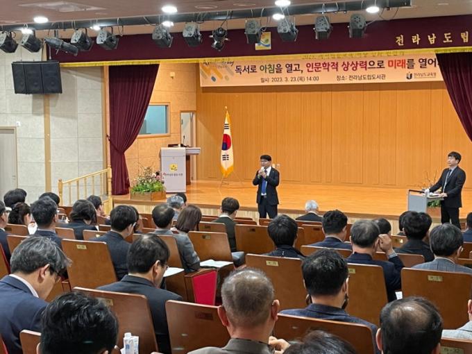 Àü¶ó³²µµ±³À°Ã»Àº 3¿ù 23ÀÏ(¸ñ) Àü³²µµ¸³µµ¼°ü¿¡¼ ½Ã±º ±³À°Áö¿øÃ» ±³À°Áö¿ø°úÀå ¹× ¾÷¹«´ã´çÀÚ, °íµîÇб³Àå°ú Çб³µµ¼°ü °üÀåÀ» ´ë»óÀ¸·Î ¡®µ¶¼Àι®±³À° ¿ª·® °È ¿¬Âùȸ¡¯¸¦ ½Ç½ÃÇß´Ù.