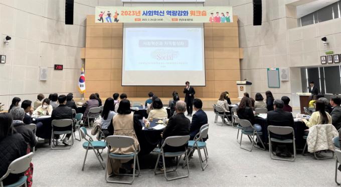 ¿öÅ©¼ó¿¡¼± 2023³â »çȸÇõ½Å »ç¾÷À» ÃßÁøÇÑ Áö¿ª°øµ¿Ã¼ ´ëÇ¥¿Í ½Ã±º »çȸÇõ½Å ´ã´ç °ø¹«¿ø µî 80¿© ¸íÀÌ Âü¼®ÇØ »óÈ£ Á¤º¸¸¦ °øÀ¯ÇÏ°í Æ¯°À» ÅëÇØ ¿ª·®À» °ÈÇß´Ù. ¡®»çȸÇõ½Å¡¯Àº Áö¿ª»çȸ°¡ ¾È°í ÀÖ´Â ´Ù¾çÇÑ ¹®Á¦¸¦ Á¤ºÎ³ª ÁöÀÚü ÁÖµµ°¡ ¾Æ´Ñ Áö¿ªÁÖ¹ÎÀÌ Áß½ÉÀÌ µÅ ½º½º·Î ÇØ°áÇÏ´Â »õ »ç¾÷ ÃßÁø ¹æ½ÄÀÌ´Ù.