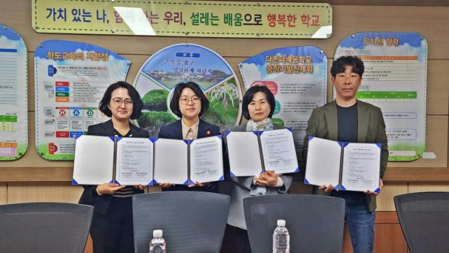 ÇÑÆí, À̳¯ Çù¾àÀ» ÅëÇØ ¾ÈÀüÇϰí ÇູÇÑ ÇϵµÃʵîÇб³ ¸¸µé±â¿¡ Çб³¿Í Áö¿ª»çȸ°¡ ÇÔ²² Çù·ÂÇÒ °ÍÀ» È®ÀÎÇϰí È®¾àÇÏ´Â ±âȸ°¡ µÇ¾ú´Ù.