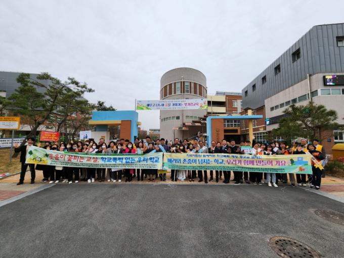 ³ªÁÖ±³À°Áö¿øÃ» ¹ÚÀ±ÀÚ ±³À°ÀåÀº ¡°Çб³¿Í ÇлýÀÇ ¾ÈÀü°ú Æòȸ¦ À§ÇØ ¸¹Àº À¯°ü±â°üÀÌ ÇÑ ¸ñ¼Ò¸®¸¦ ³»´Â °ÍÀº ±²ÀåÈ÷ °í¹«ÀûÀÌ´Ù. ÇÑ ¾ÆÀ̸¦ Ű¿ì·Á¸é ¿Â ¸¶À»ÀÌ ÇÊ¿äÇÏ´Ù´Â ¸»ÀÌ ÀÖ´Ù. Áö¿ªÀÇ ¸¹Àº ¾î¸¥µéÀÌ °ü½ÉÀ» °¡Áö°í ÀÖ´Ù´Â °ÍÀ» ÇлýµéÀÌ µî±·±æ¿¡ È®ÀÎÇÑ °Í¸¸À¸·Îµµ Çб³Æø·Â¿¹¹æ ¹× ±ÙÀýÀÇ ¸ñÇ¥¿¡ Çѹߦ ´Ù°¡¼¹À» °ÍÀ̶ó°í »ý°¢µÈ´Ù. ¡±¸ç, À̹ø Ä·ÆäÀÎÀÇ ÀÇÁö¸¦ ¹àÇû´Ù.